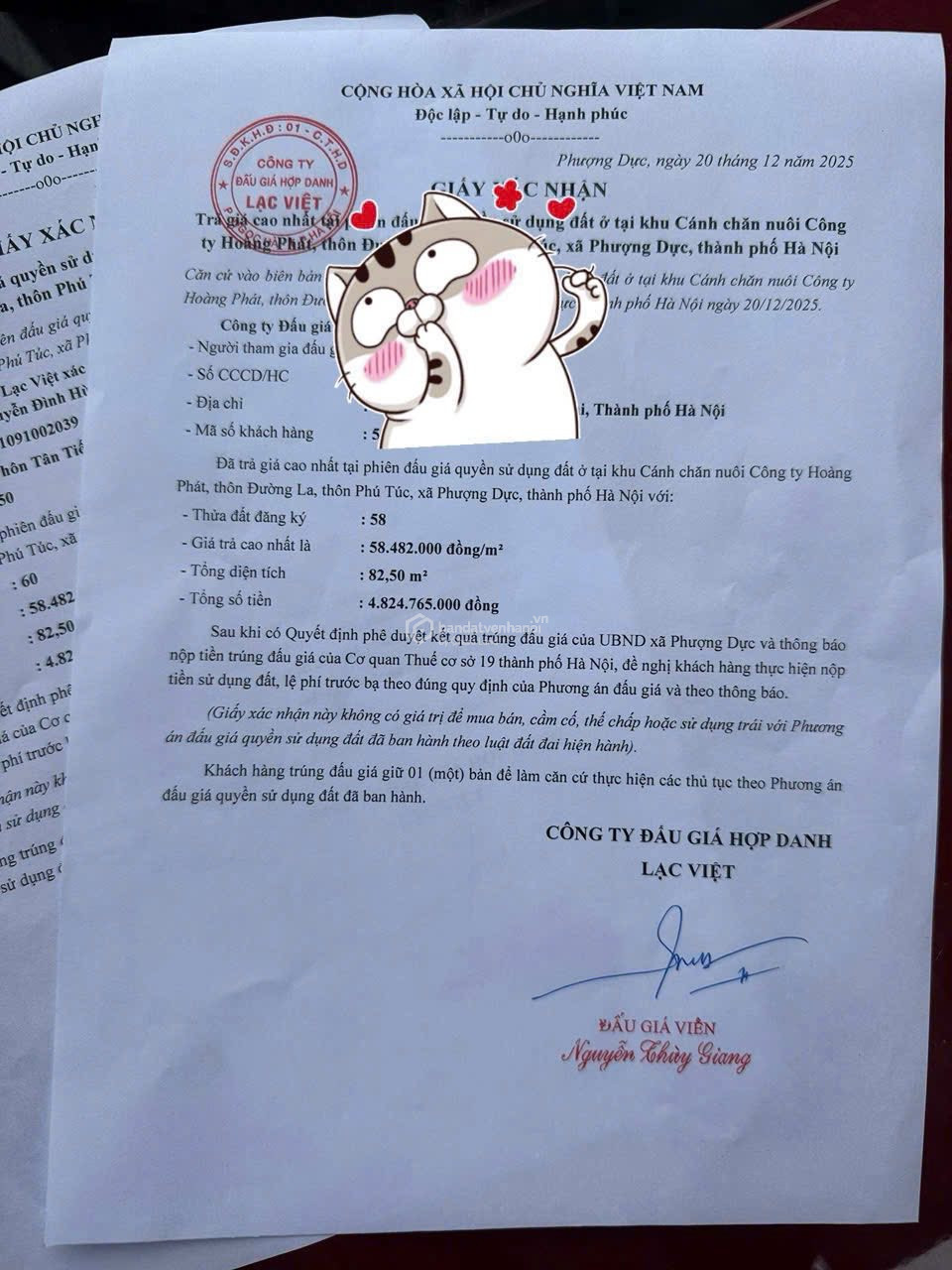 Bán đất đấu giá Đường La – xã Phú Túc – huyện Thanh Oai –