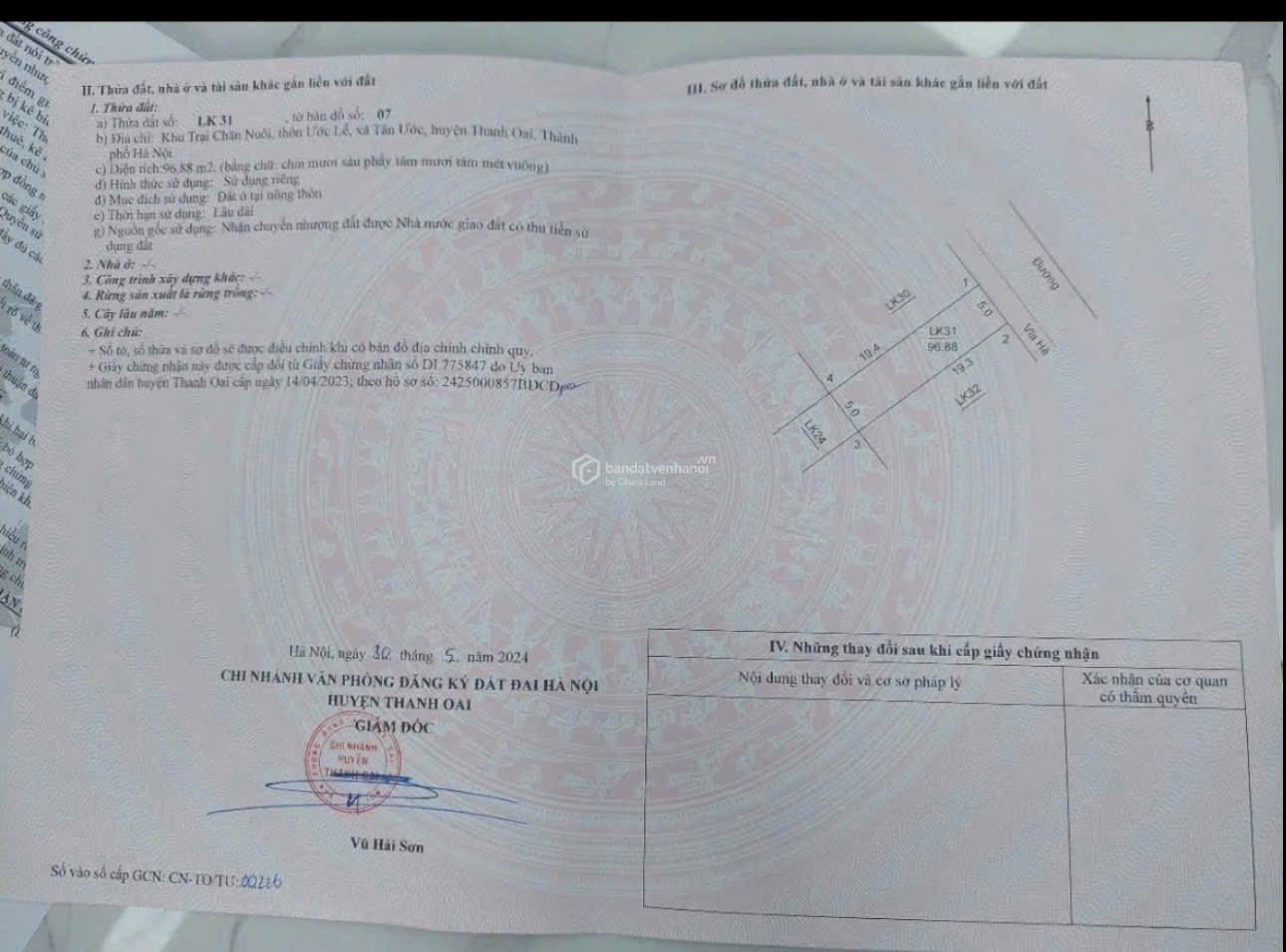 Bán đất đấu giá Trại Chăn Nuôi Tân Ước Thanh Oai 100m2 đường 11m mặt tiền 5m
