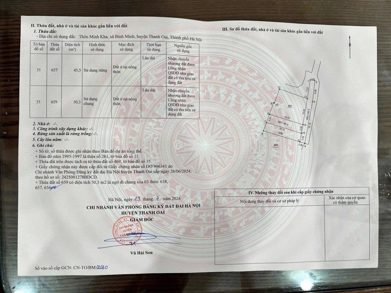 Bán đất Minh Khai Bình Minh Thanh Oai 45,5m2 ô tô đỗ cửa