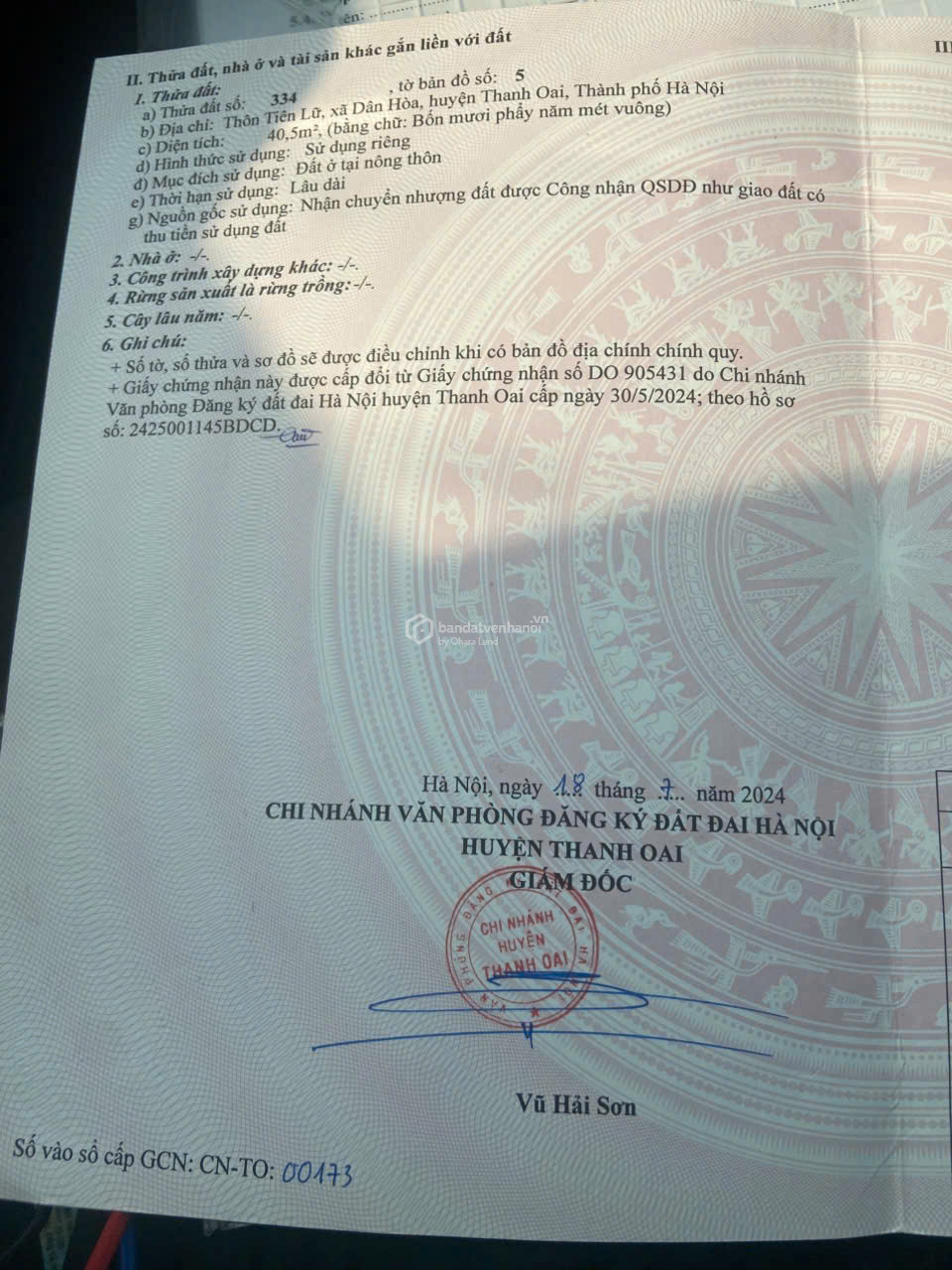 - Vị trí: Khu Tiên Nữ, Thanh Oai – khu dân cư hiện hữu
