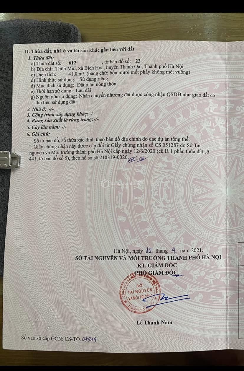 Bán lô đất tại xã Bích Hoà, Thanh Oai, Hà Nội diện tích 41m² Mặt tiền 3,88m Đường ô