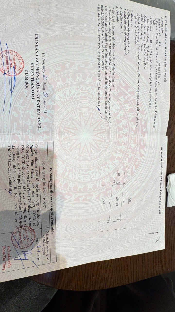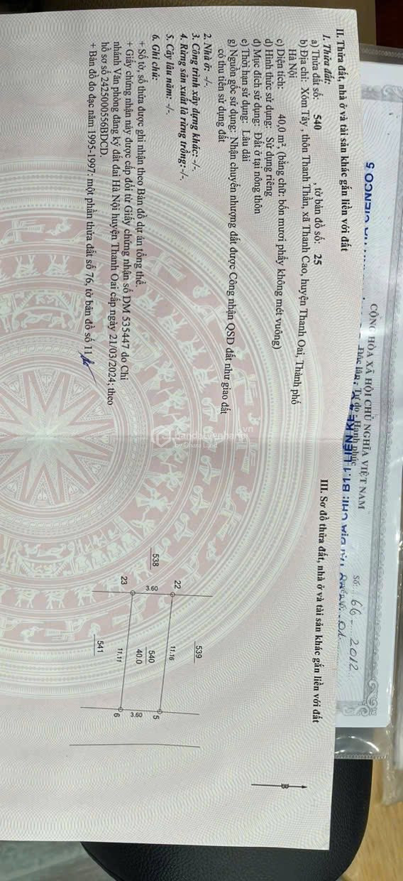 Bán 2 lô đất Thanh Cao Bình Minh Thanh Oai 40m2 ô tô đỗ cửa