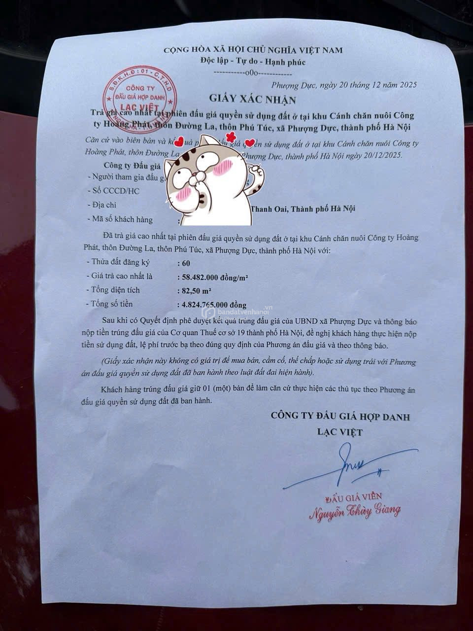 Bán đất đấu giá Đường La – xã Phú Túc – huyện Thanh Oai –